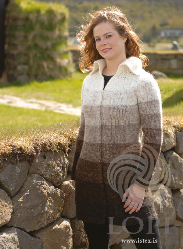 LAND ist eine schöne lange Strickjacke, gestrickt aus 2 Fäden der leichten und gesponnenen isländischen Wolle Plötulopi.
