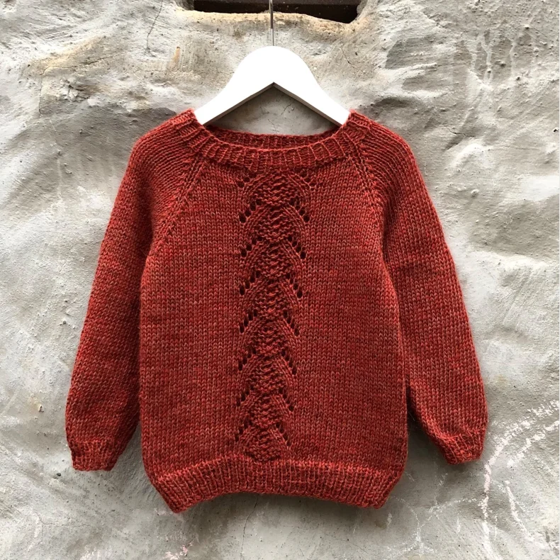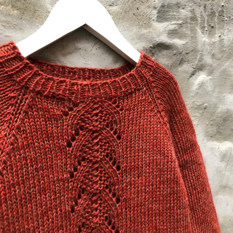 The Anna Sweater is a cute blouse with a feminine and simple hole pattern. It is knitted from the bottom up in a thread of Yaku and a thread of Thin Lama Wool at the same time.