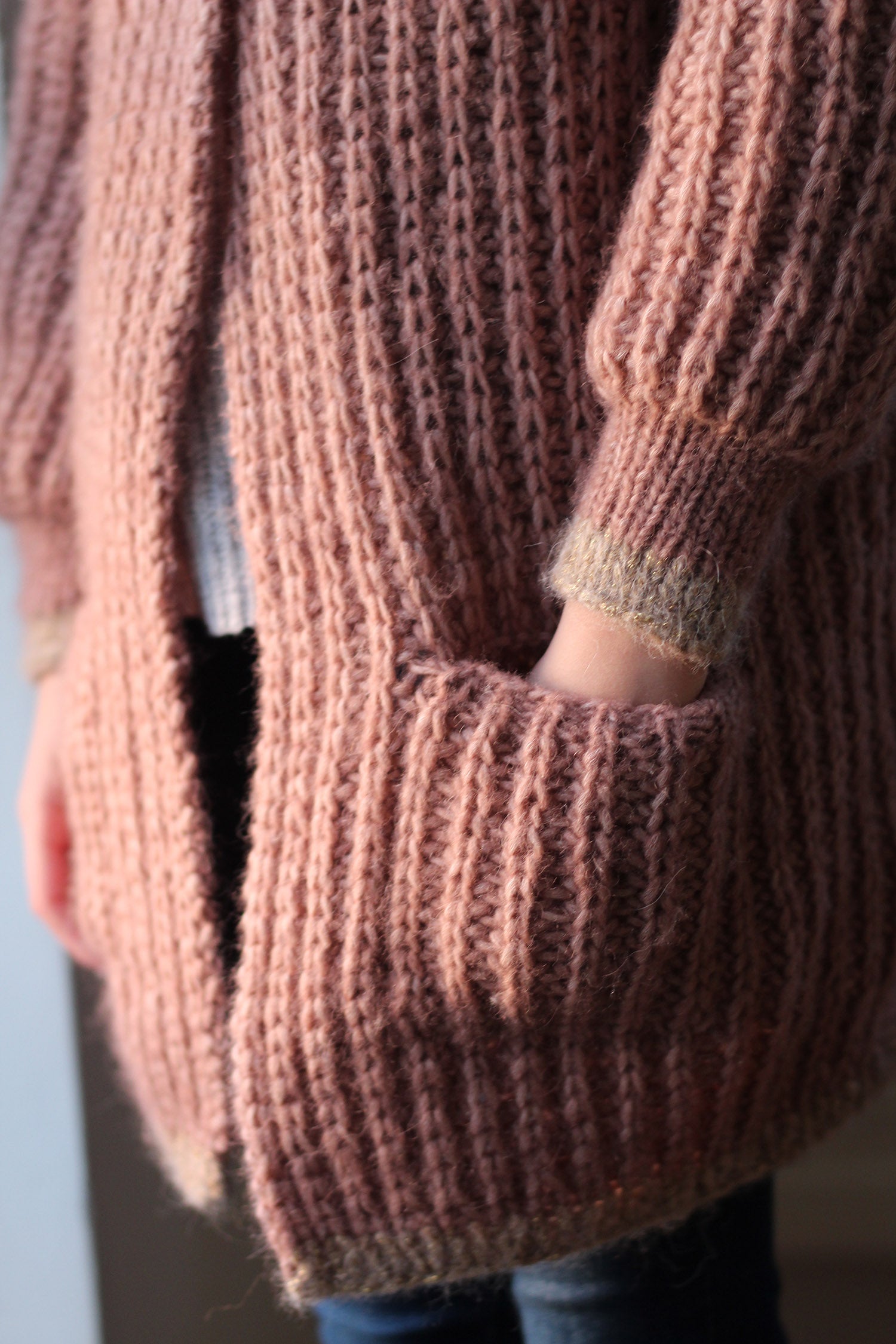 Dream cardigan for girls from CaMaRose is a feminine cardigan for girls that is knitted from top to bottom in semi-patent on needle no. 6. The fact that the model is knitted from top to bottom allows you to try on the model along the way and adjust the length of both the cardigan and the sleeves. Internal pockets are knitted during the work.