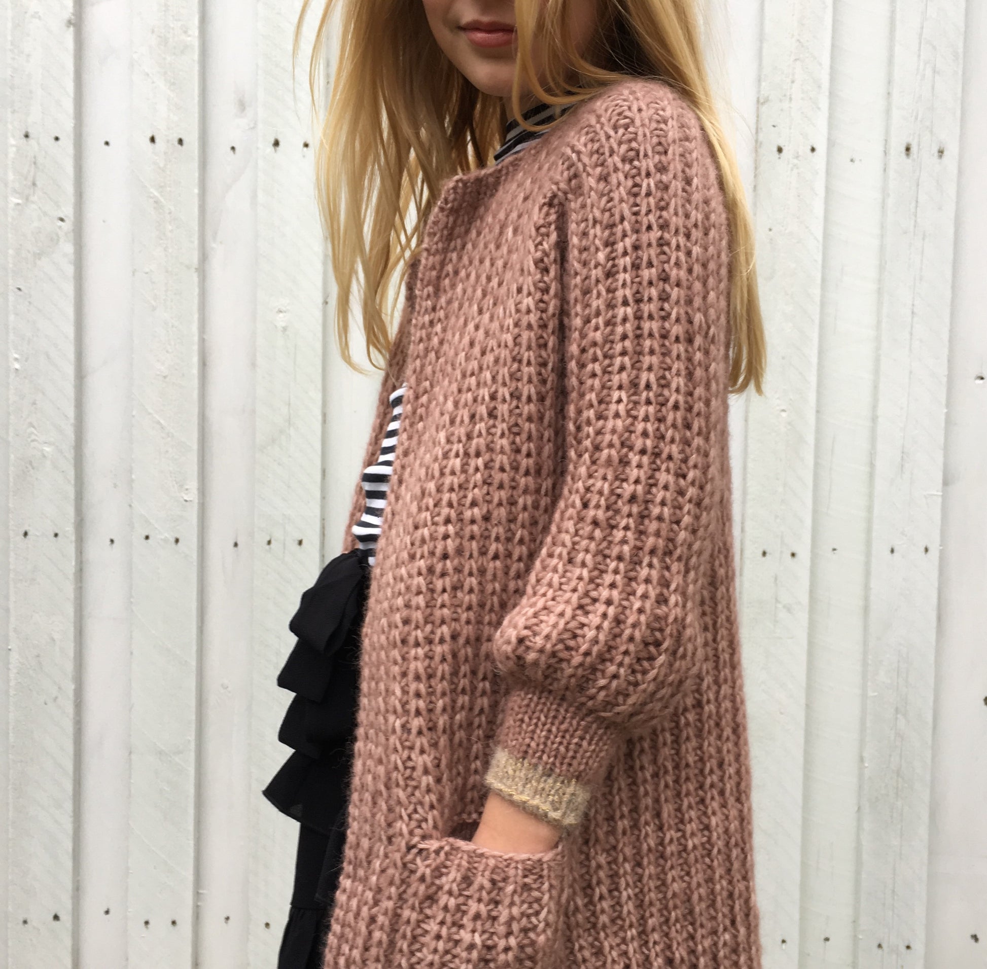 The cardigan can be knitted in the super soft Snowflake , which consists of 100% natural materials.