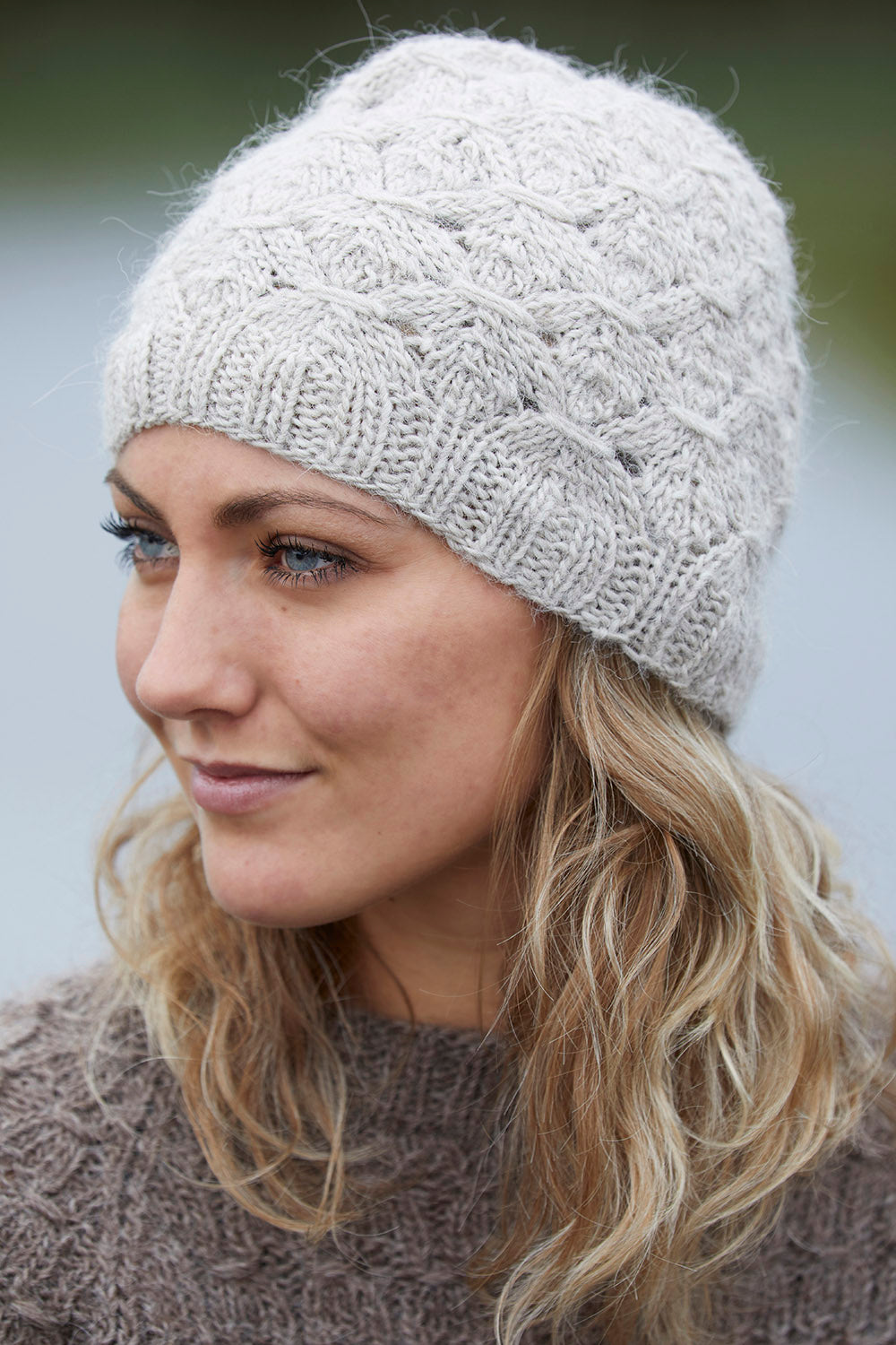 Gudenå Huen is knitted in a beautiful hole pattern with a smock effect. In the recipe there is a detailed description stick by stick. The hat is knitted in the round on circular needle from the bottom up, and is changed to double pointed needles as the work requires.