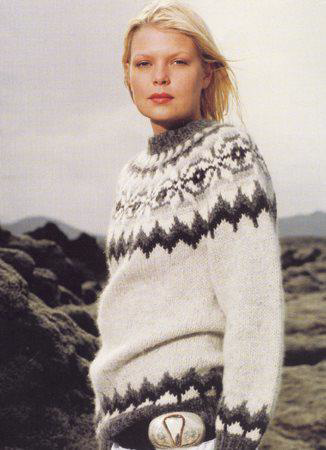 Classic beautiful sweater in Icelandic knit with round collar. the model is knitted from the bottom up.