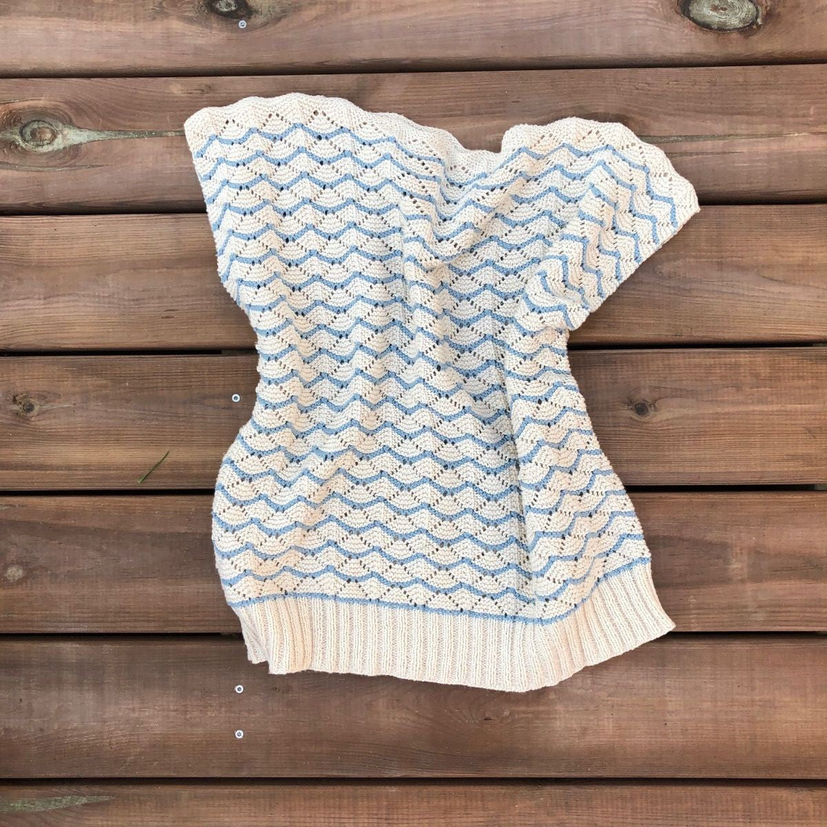 Summer vibe top. is a simple top with a very simple pattern. that consists of straight pins on both the right side and the wrong side. In addition to straight stitches, the pattern consists of 3 stitches that are knitted together and wrapped around the needle. The pattern looks advanced. but is simple to knit. The construction is also very simple and consists of two pieces that are sewn together. In the recipe is both a diagram and a description stick by stick.