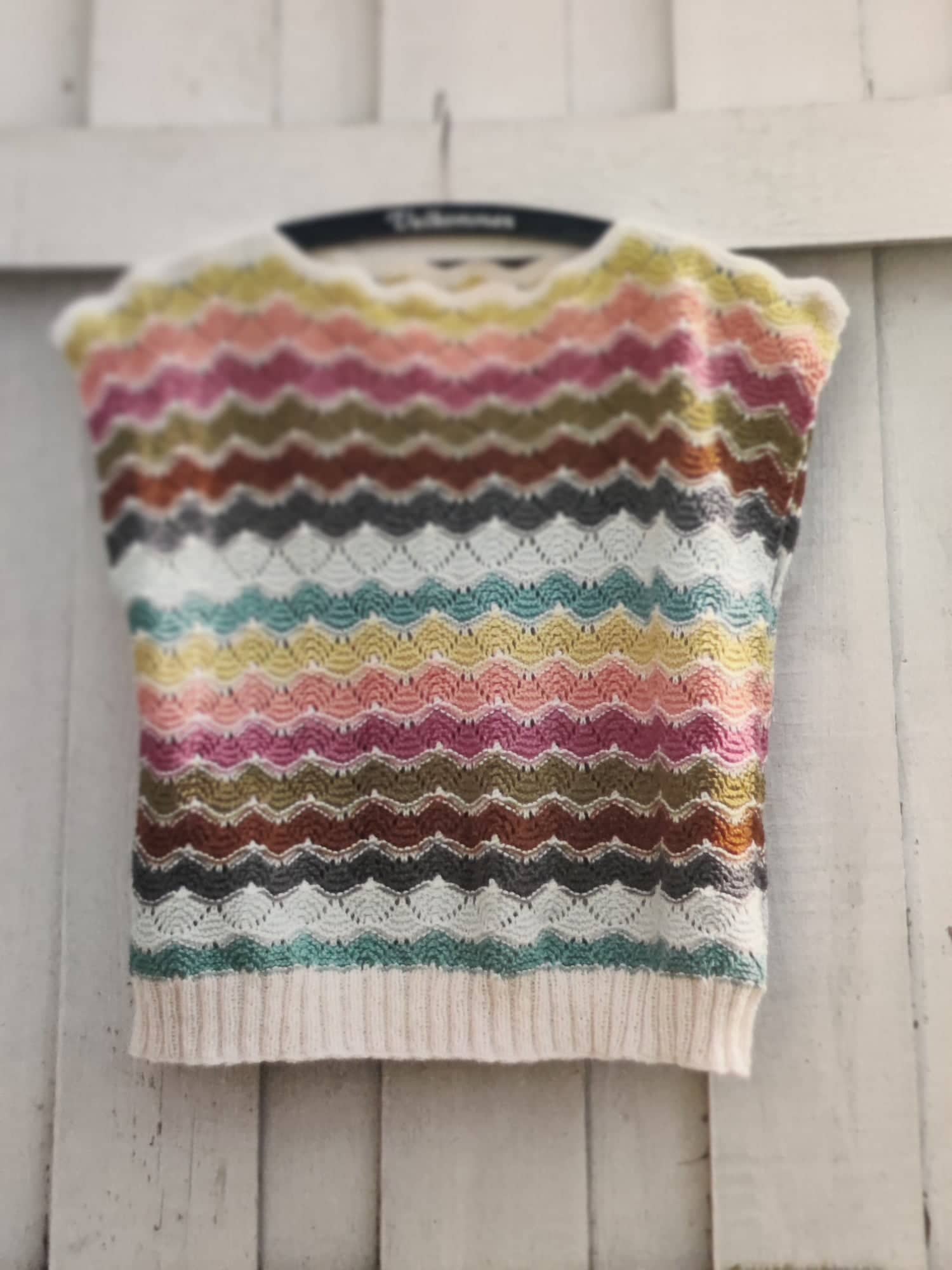 Summer vibe top is knitted from top to bottom and can therefore be lengthened or shortened as desired.
