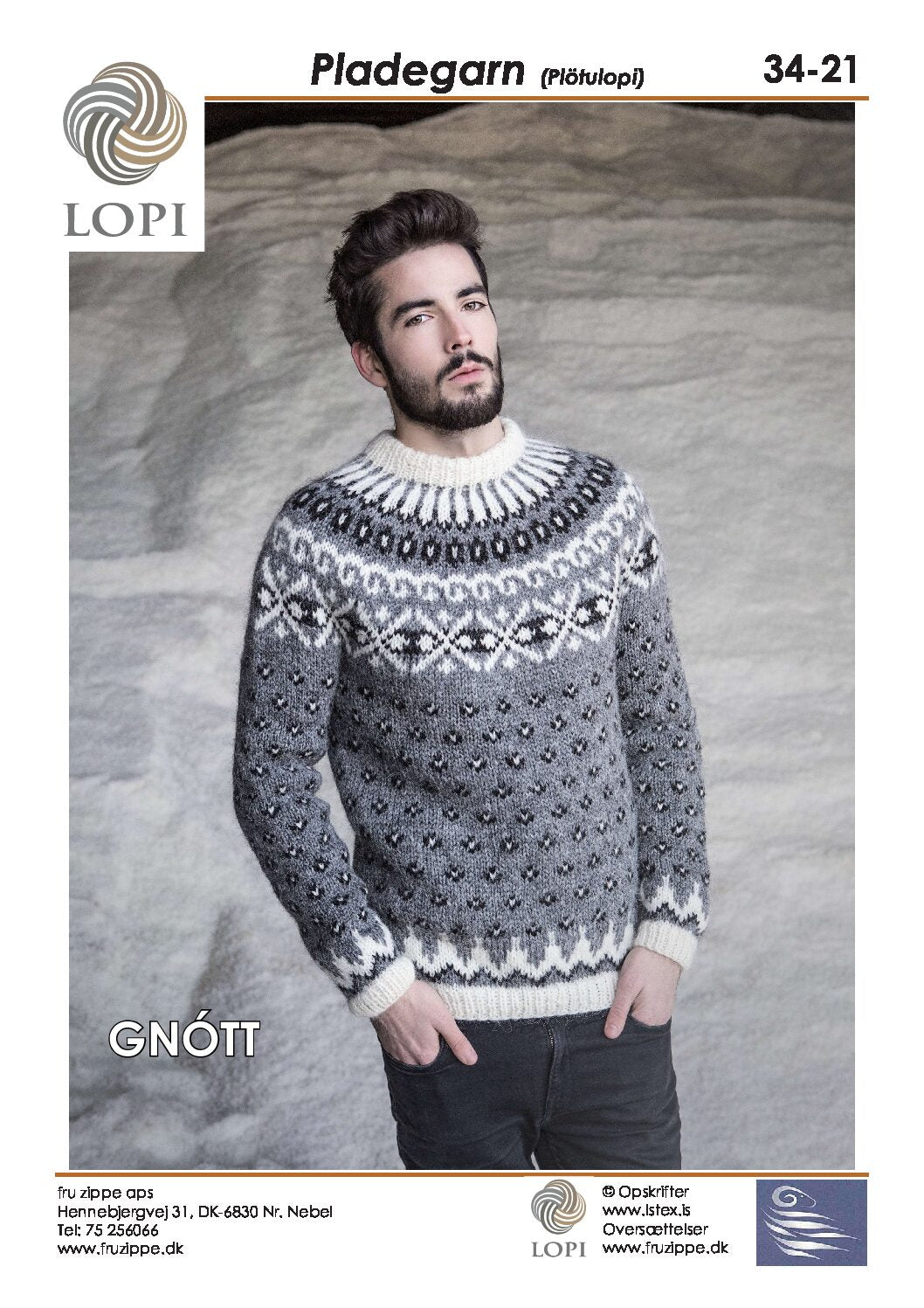 Gnott er en flot klassisk islandsk sweater strikket i pladegarn