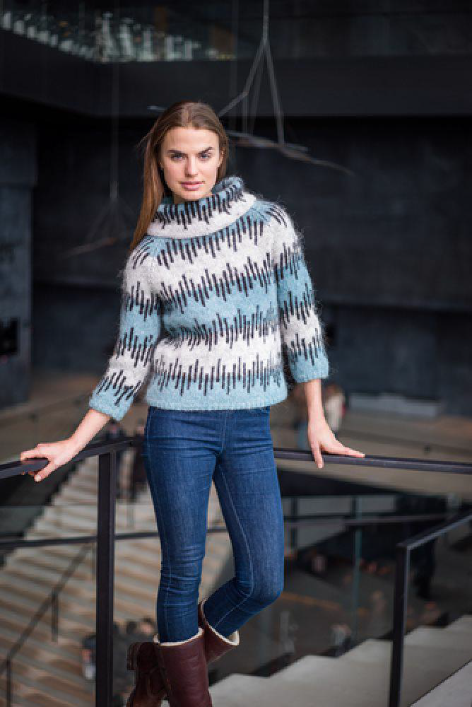 En anderledes Islandsk sweater med et smukt mønster. den er strikket i den skønne Àlafoss Lopi