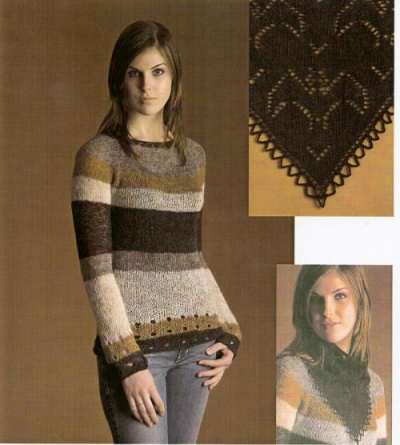 Smuk let bluse strikket i Einband. den har et fint enkelt hulmønster i kanterne.