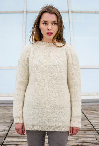Smuk og enkel islandsk sweater med et diskret mønster på bærestykket strikket i 100% islandsk uld