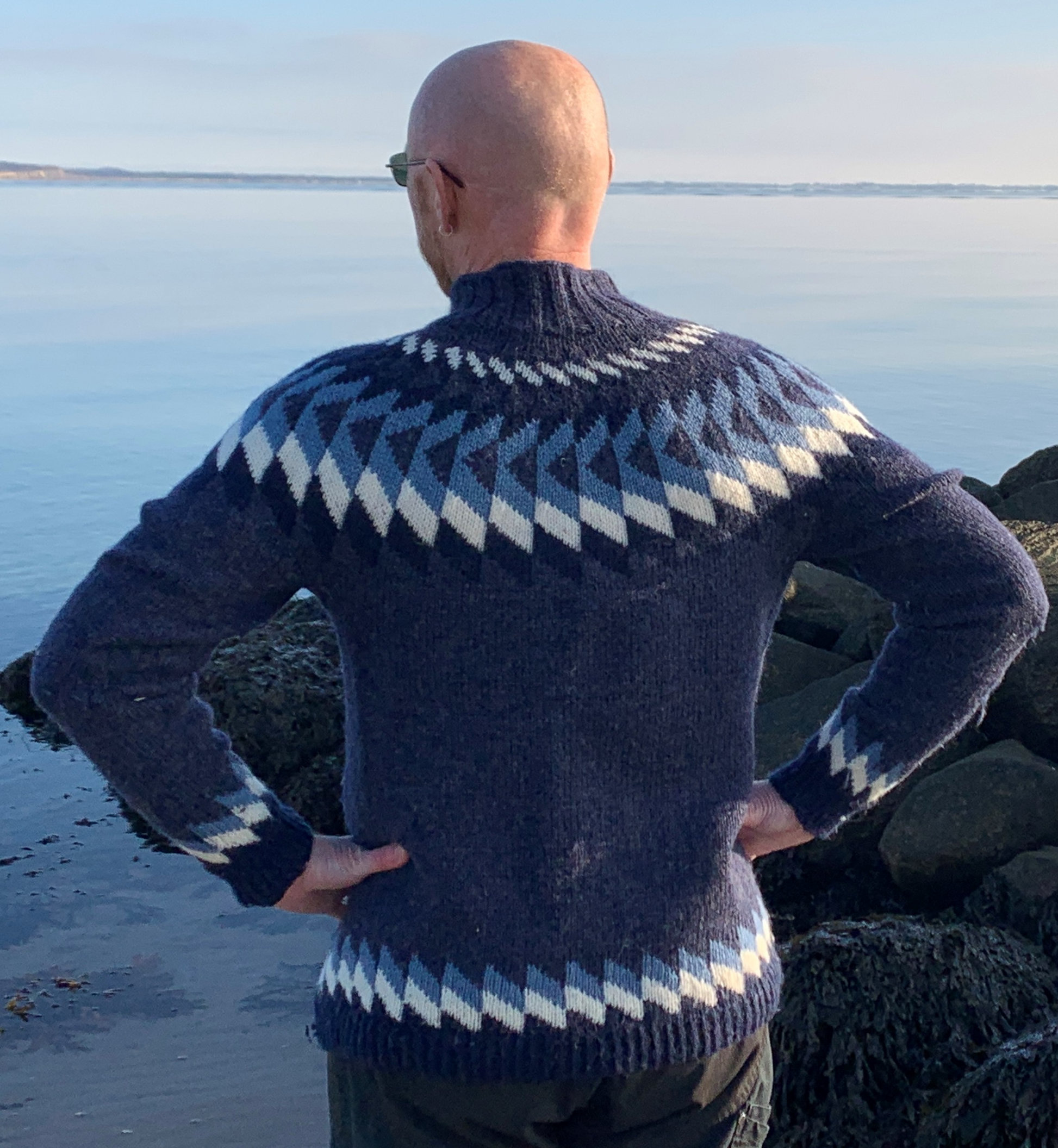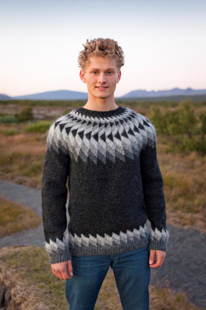 Jòn er en herresweater med et smukt bærestykke.