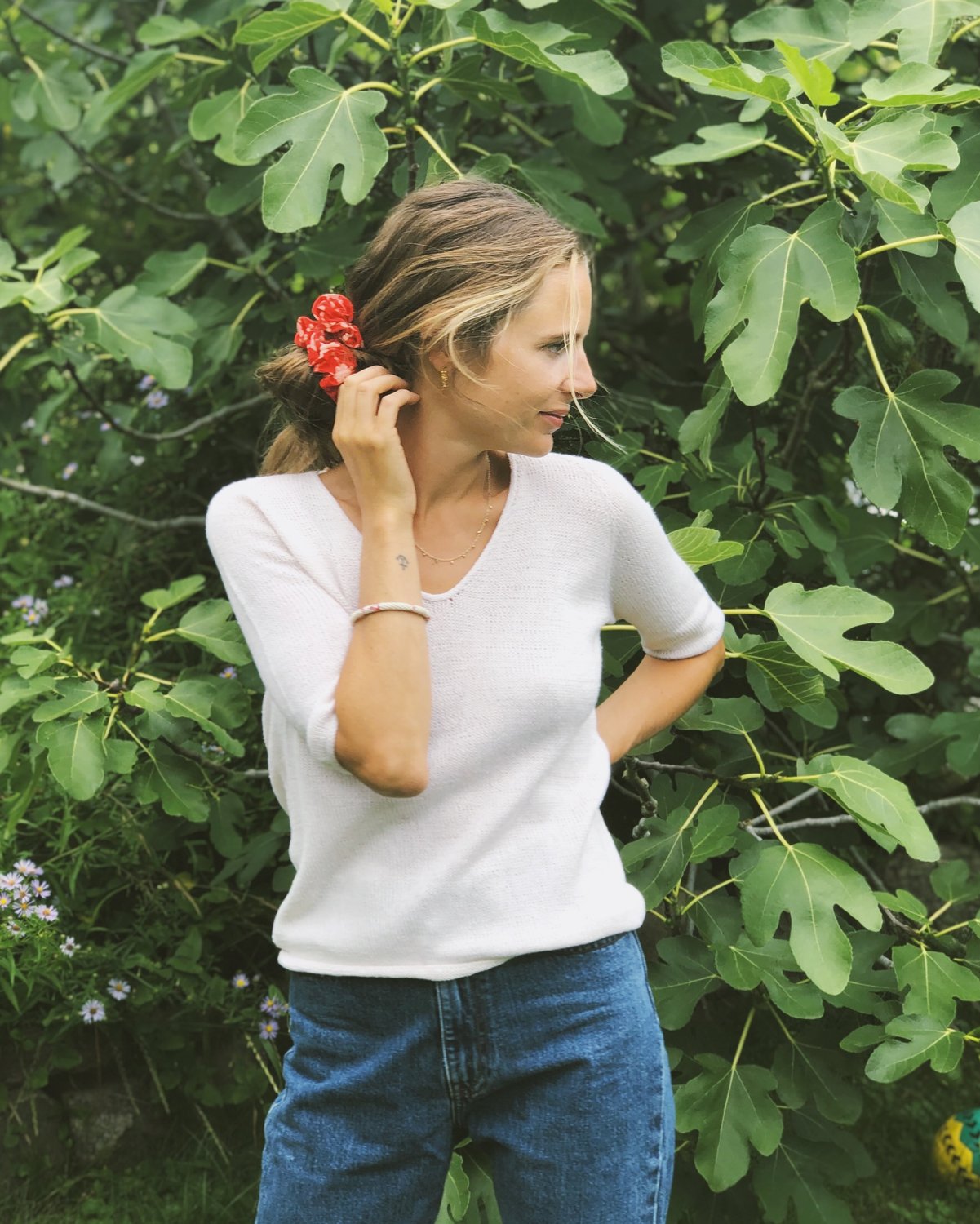 Kumulus Tee strikkes i glatstrik oppefra og ned og har en afrundet V-udskæring foran. Ærmerne går til albuerne. og langs alle kanter strikkes en i-cordkant. Kumulus Tee er monteringsfri.