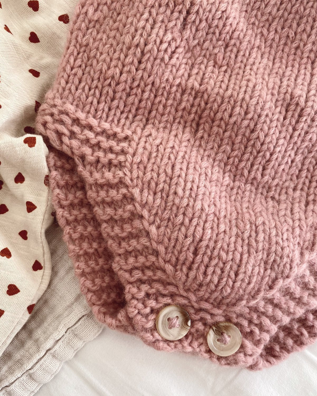 Kroppen strikkes rundt på rundpind. mens overdelens for- og bagstykke også strikkes hver for sig.